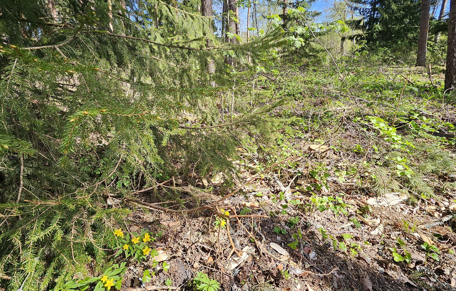 Osaliselt kõrgel reljeefil paiknev kinnistu pakub erinevas arengujärgus metsakasvu - kirde-ida poolne külg männinoorendikuga, keskmise kõrgusega energiavõsa turbe all, kinnistu lääne-lõunapoolne osa on kõrgete okaspuudega suhteliselt puuduva alusmetsa rindega ehk siis metsaalune on saanud valgustusraie tulemusena parkmetsa iseloomu. Puude all kasvamas nii jänesekapsas, piibeleht, ülased jm metsalilled, Jalutuskäigul kuuled metsalindude elavat keskustelu ning kõrghaljastus pakub kaitset lõõskava päikese eest, mis ühtlasi pakub olulist puhvrit meretuulte poolsel küljel.