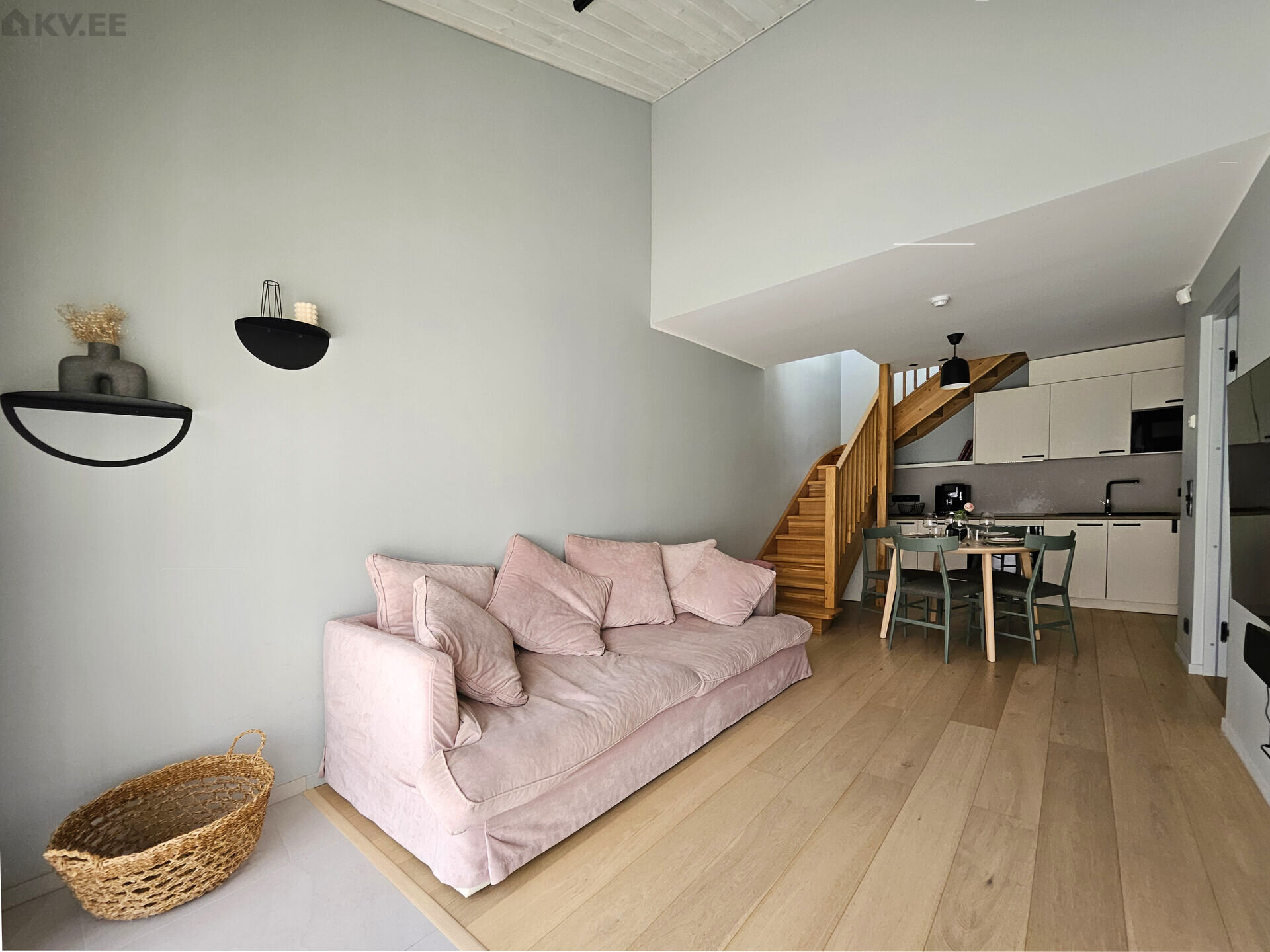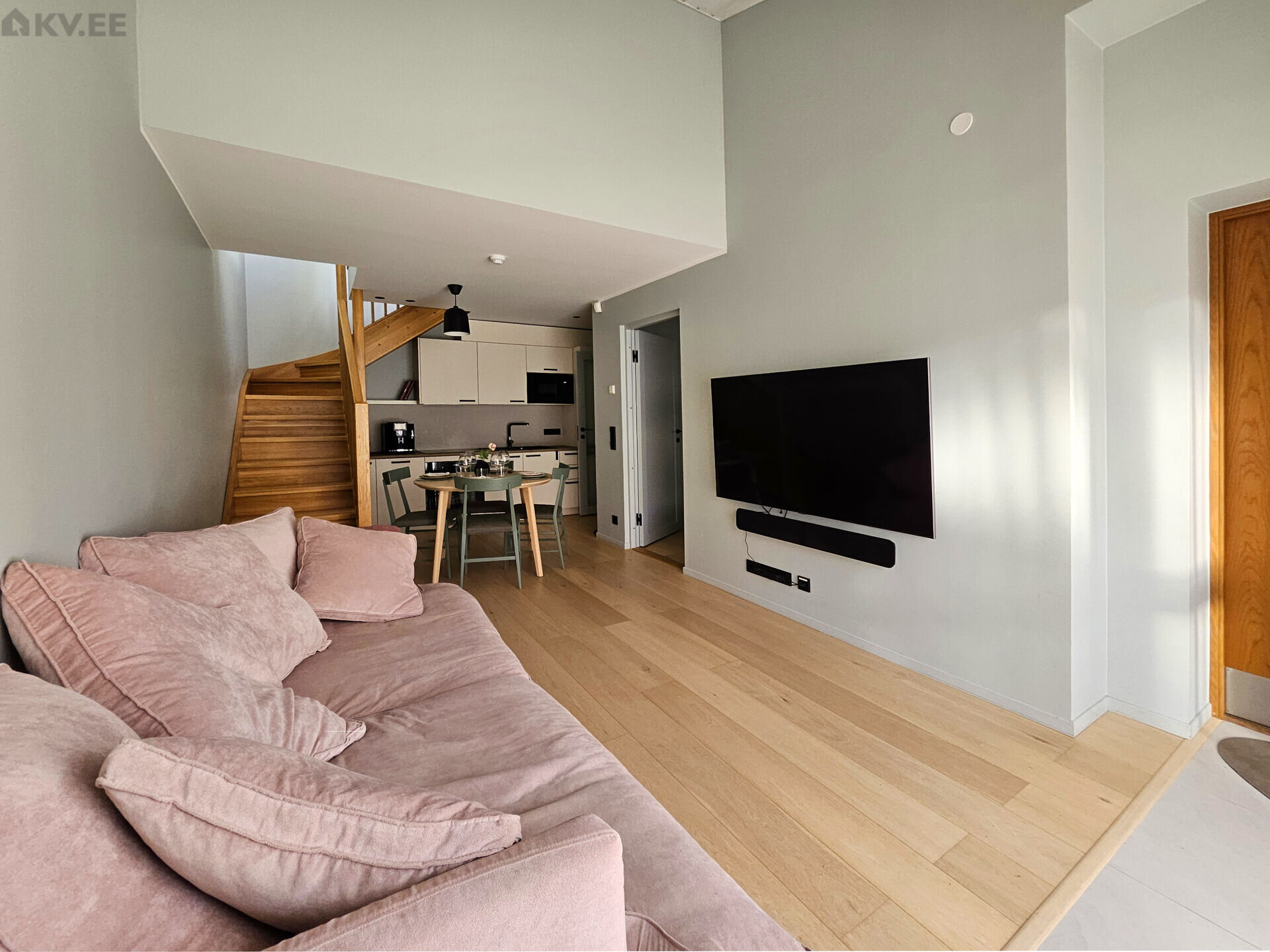 Korteri planeering läbi kahe korruse - esimesele korrusele jääb avatud elutuba kööginurgaga, üks magamistuba ja pesuruum, teisele korrusele viib tammespooniga trepp kus trepihall ja magamistuba. Köögimööbel koos köögitehnikaga sisaldub hinnas, lisaks veinikülmik ja JURA kohvimasin.